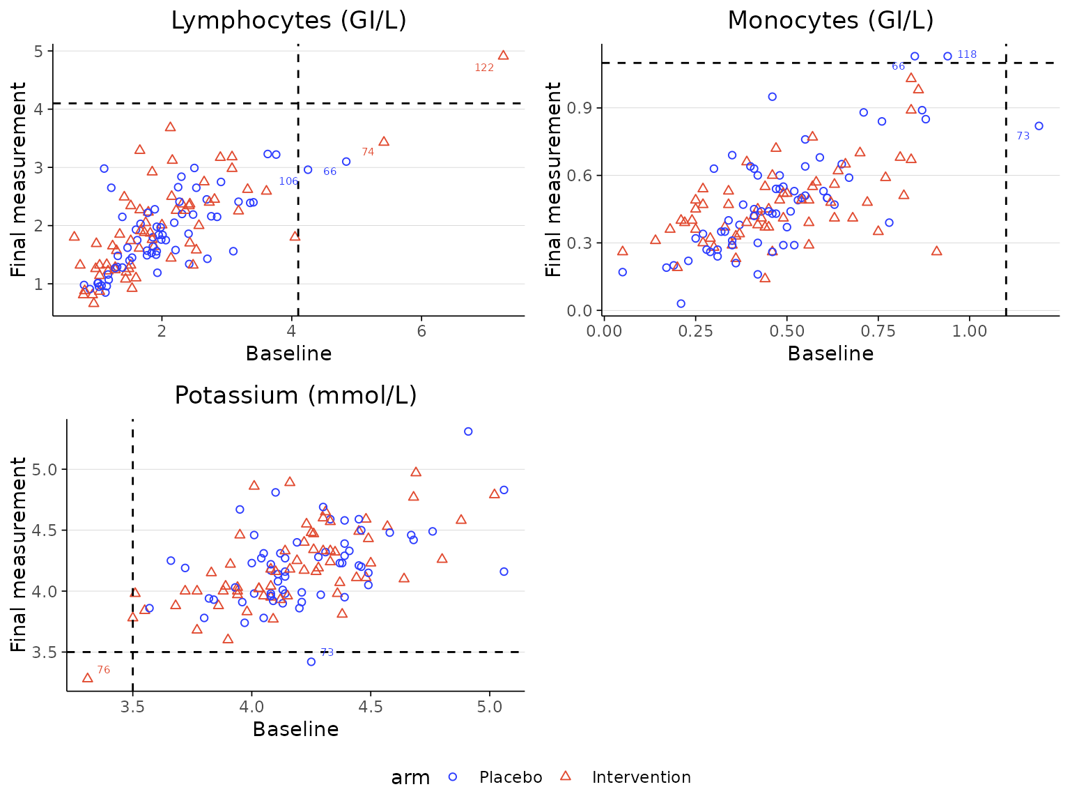 labscatter(lab2, arm_levels=c("Placebo", "Intervention"),
